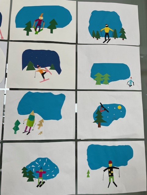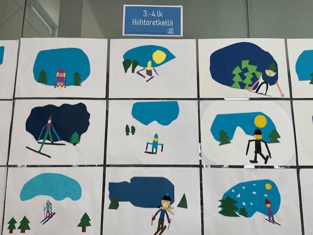 Suhmura school students took the joy out of winter and made a skiing tirp nearby the school. Afterwards they made artworks of this wintry trip.
